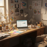 Photo Idea : A cozy study corner with a small poster on the wall that reads a student's short 'Why AP' statement. A laptop with a practice test open and a mug beside it make the scene feel lived-in and purposeful.