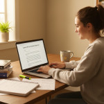 Photo Idea : A top-of-page photo suggestion โ€” a candid shot of a student working on a map and notes, a world atlas open, laptop beside them, with sticky notes showing AP course names. The shot should feel warm and focused, signaling curiosity and study in progress.