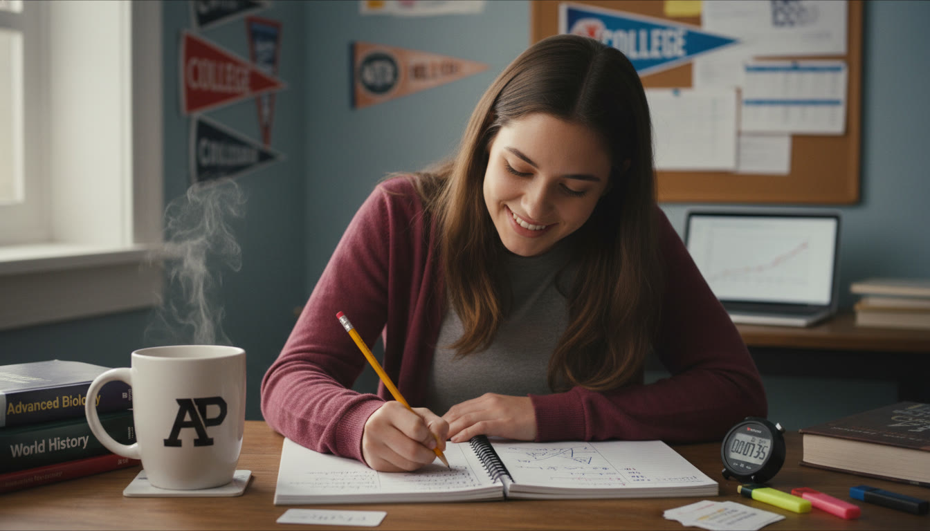 Photo Idea : A focused student at a desk with two columns of notes labeled A and B, a stopwatch, and a mug of coffee — conveys concentration and quick thinking early in a study session.