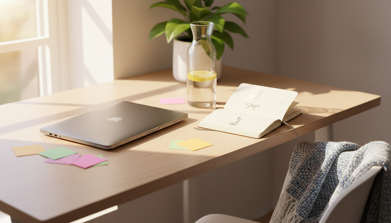 • Breath and posture: Two minutes of simple breathing (inhale for 4, exhale for 6) and posture checks help drop cortisol spikes.