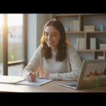 Photo Idea : A focused student at a desk with notebooks and a laptop open to an application form