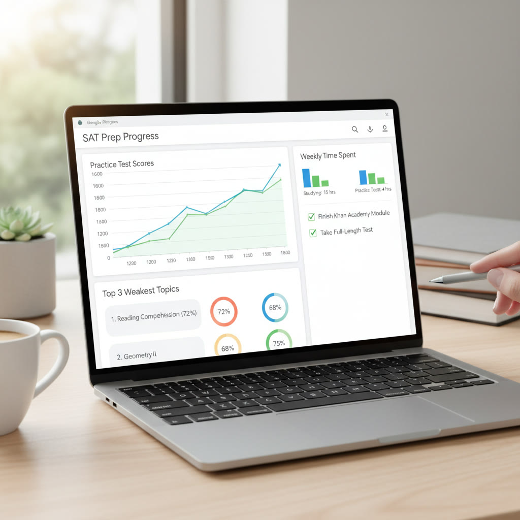 - Add an inspiring but short goal statement at the top of the Dashboard (e.g., “Score 1400 by March; focus: timing and algebra” ).