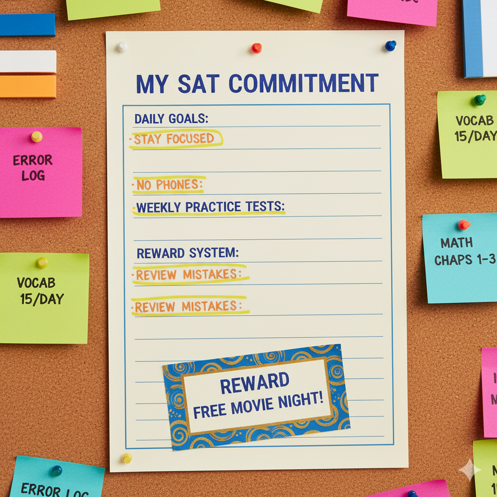 If you’ve ever promised yourself you’d “study more” and then watched Netflix instead, you’re not alone. A study contract turns vague intentions into a clear, realistic agreement between you and — well — you. Especially for the Digital SAT, where practice and familiarity with the testing app and adaptive format matter as much as content knowledge, a contract helps you commit to a plan, measure progress, and adjust when life gets busy.