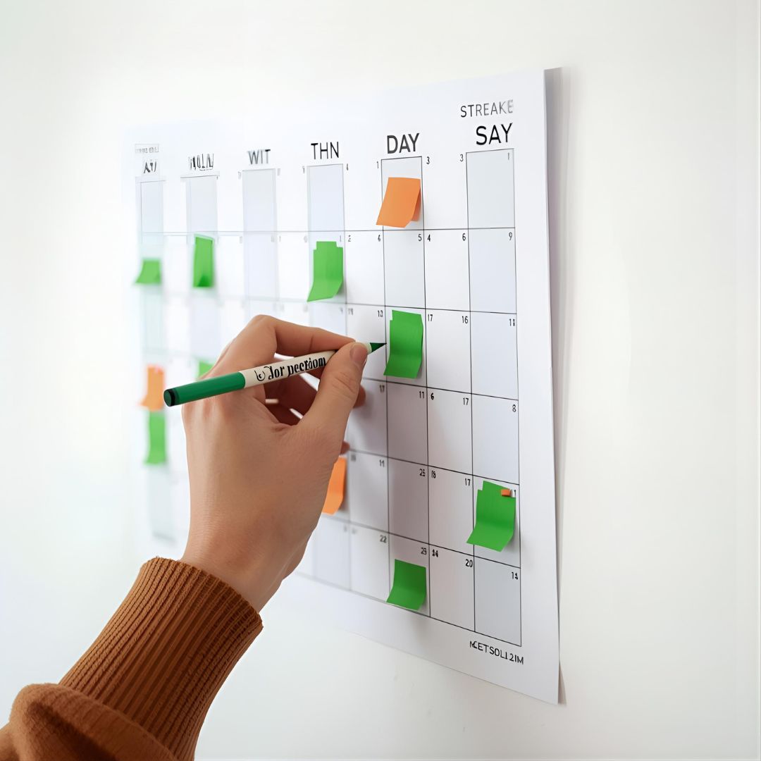 - Streak calendar: Mark green squares for days you complete a focused 45–60 minute study session.