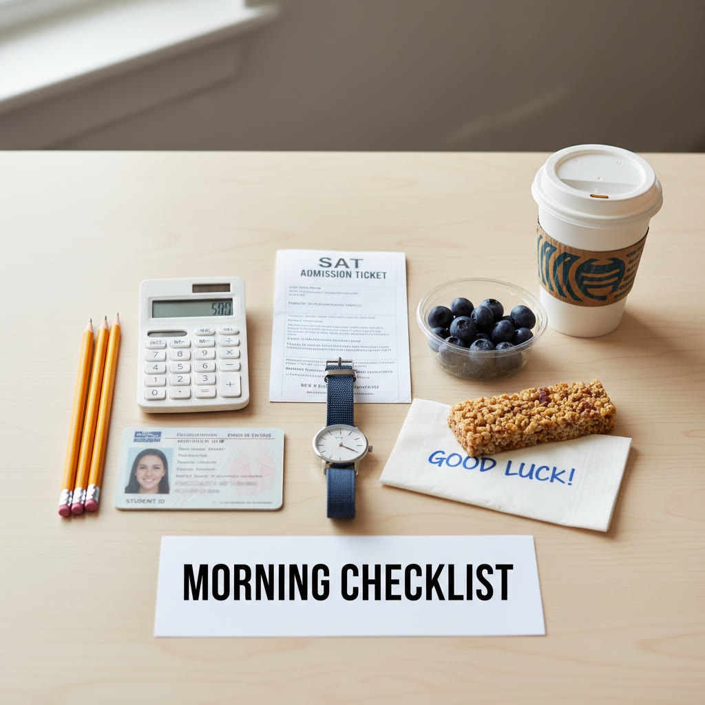 Test day morning is a small window where calm choices compound into clear performance. You don’t need perfection — you need practice. Build a repeatable sequence: the same breakfast, the same warm-up, the same bathroom routine, the same approach to stubborn questions. Practice it in every full-length test so it feels automatic.