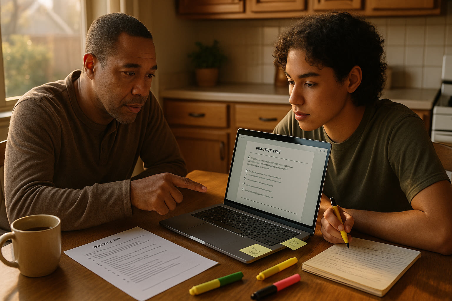 On the day of the test you’re not responsible for taking the test — but you are responsible for everything that frames the test. That matters. A quiet morning, clear transportation, and a calm tone can be as impactful as a last-minute content review.