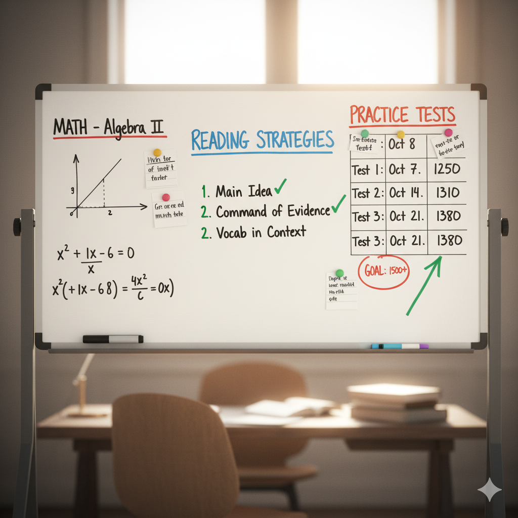By week four, the student sees a 40-point gain mainly from fewer careless errors. By week eight, a practice test shows a composite of 1360. The jump is the result of targeted practice and improved pacing — and psychologically, the student now approaches test day with curiosity instead of dread.