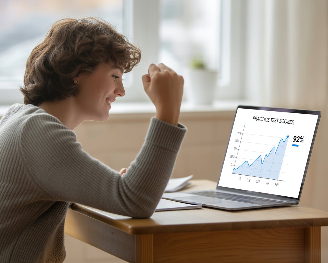• Anxiety reduction: Test anxiety often comes from uncertainty. Seeing a higher score reduces that uncertainty and calms physiological responses the next time you approach practice or a real test.