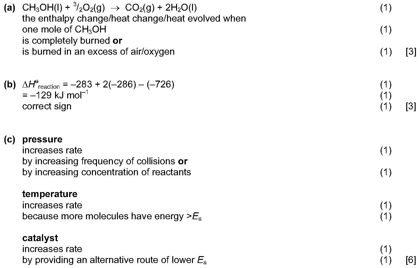 (a) Write an equation to show the reaction for the standard enthalpy change of formation of $\text{H}_2\text{O}$. Include state symbols..................