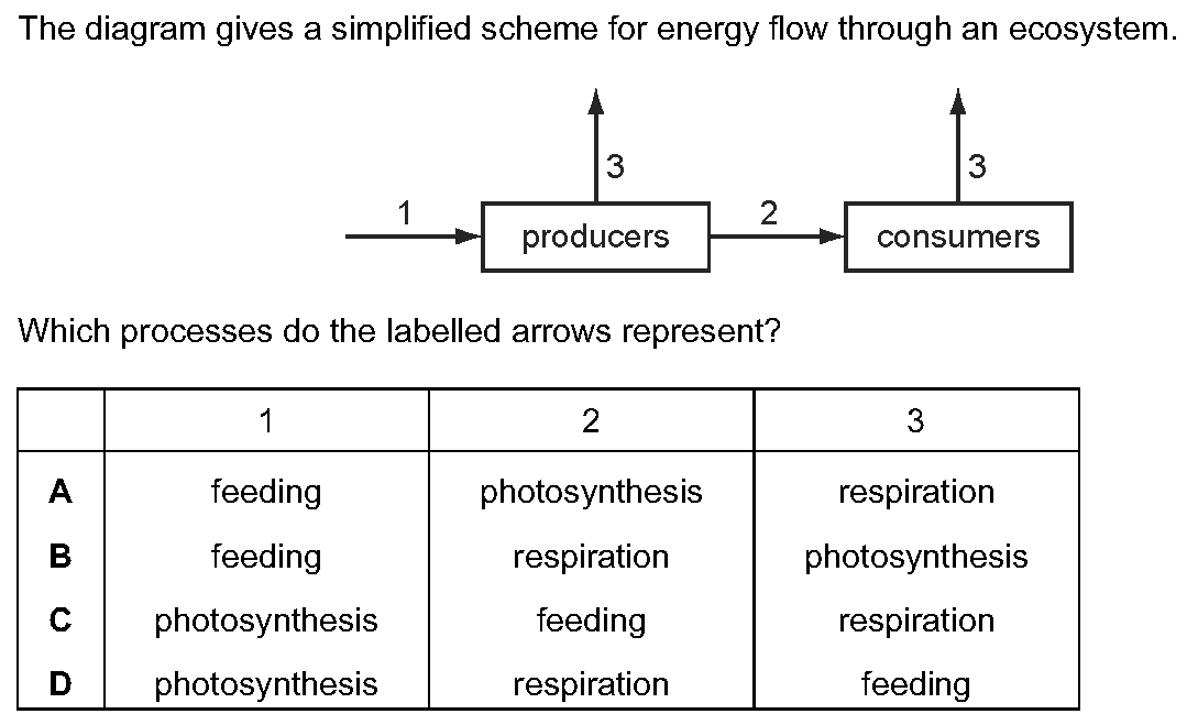 Fig. 5.1 shows a carbon cycle.(a) (i) Name the process represented by arrow A............................................................................