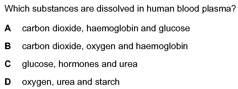 (a) One function of the blood is to transport substances around the body. Complete Table 5.1 to show where some substances may enter and leave the blo...