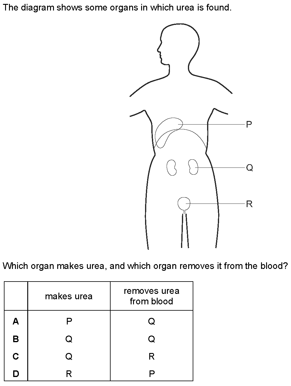 (a) (i) State the name of the organ that produces urea...................................................................................................