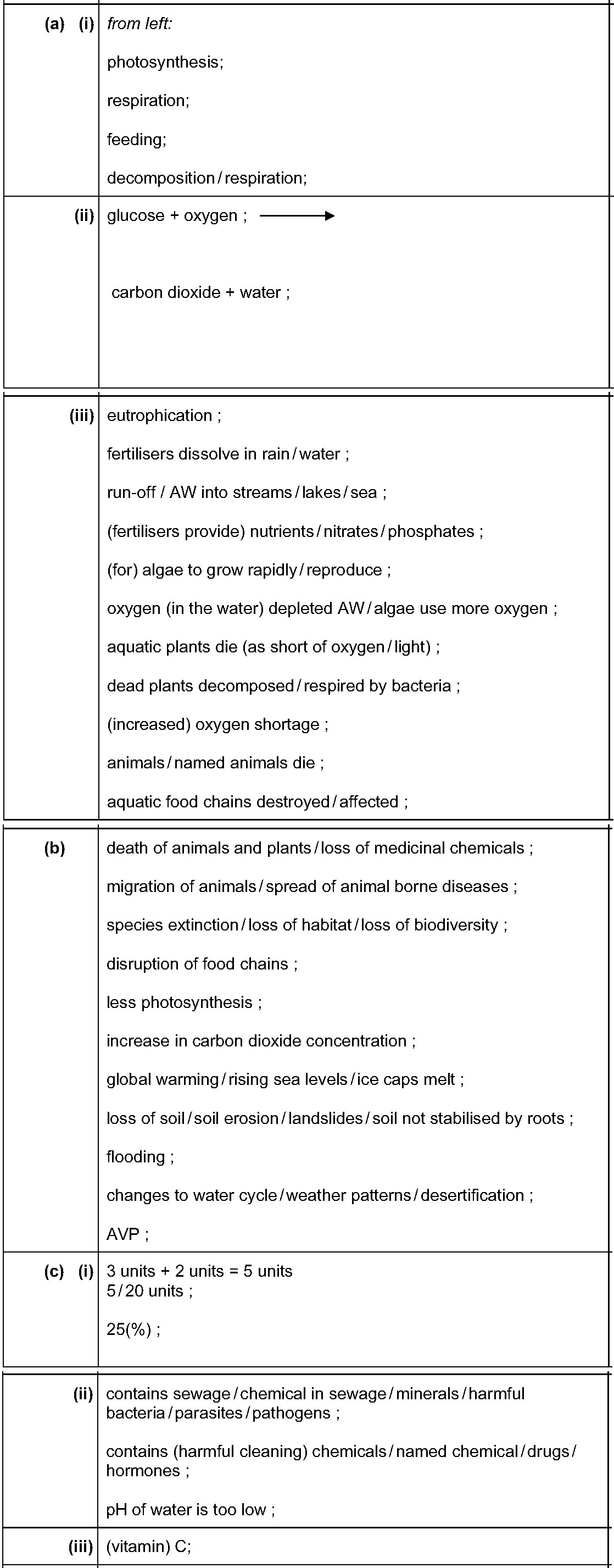 (a) Table 5.1 shows data from six countries that have large areas of tropical rainforest.Table 5.1(i) Which country had the largest area of tropical r...