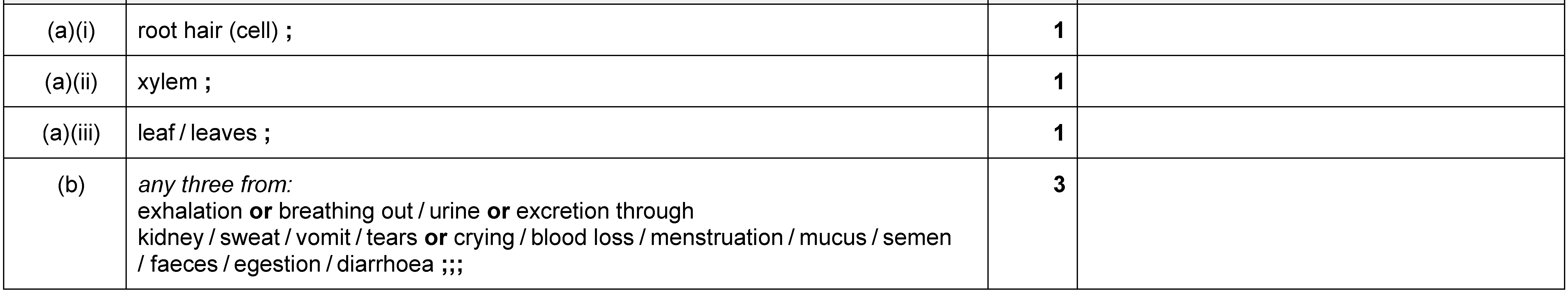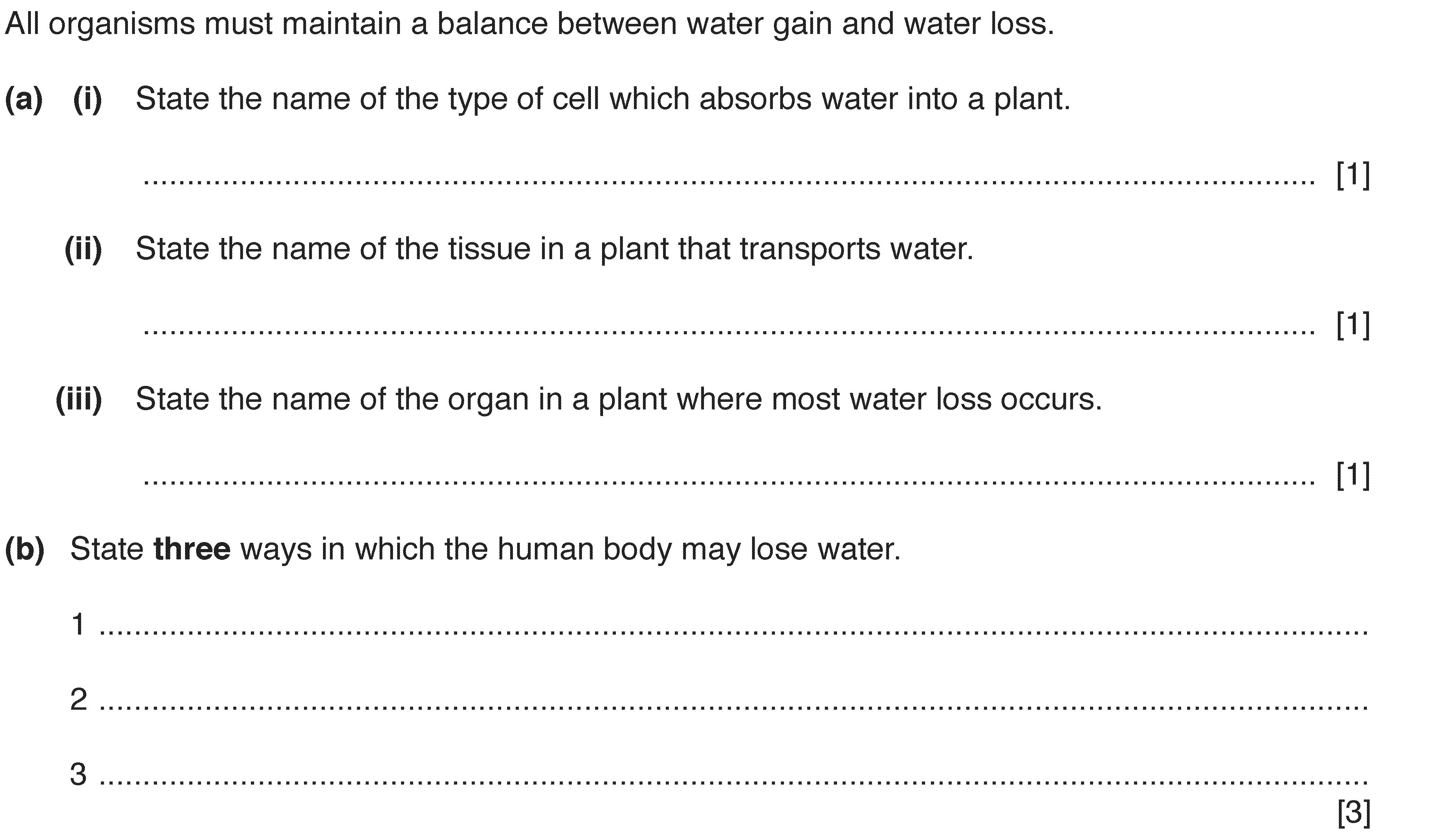 (a) (i) State three uses of water in the human body.1 ...................................................................................................