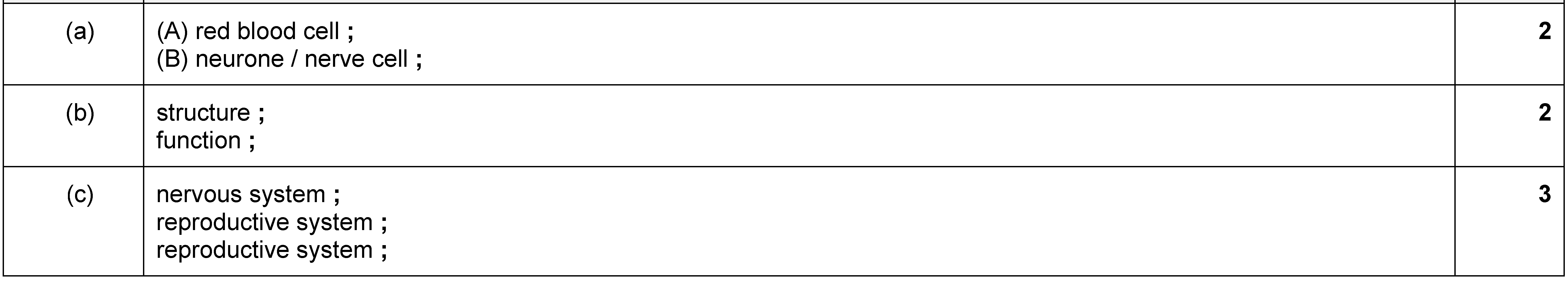 Table 3.1 shows the names of some specialised cells, each matched with a letter.!(Table 3.1 showing cells and letters)Table 3.1| specialised cell ...