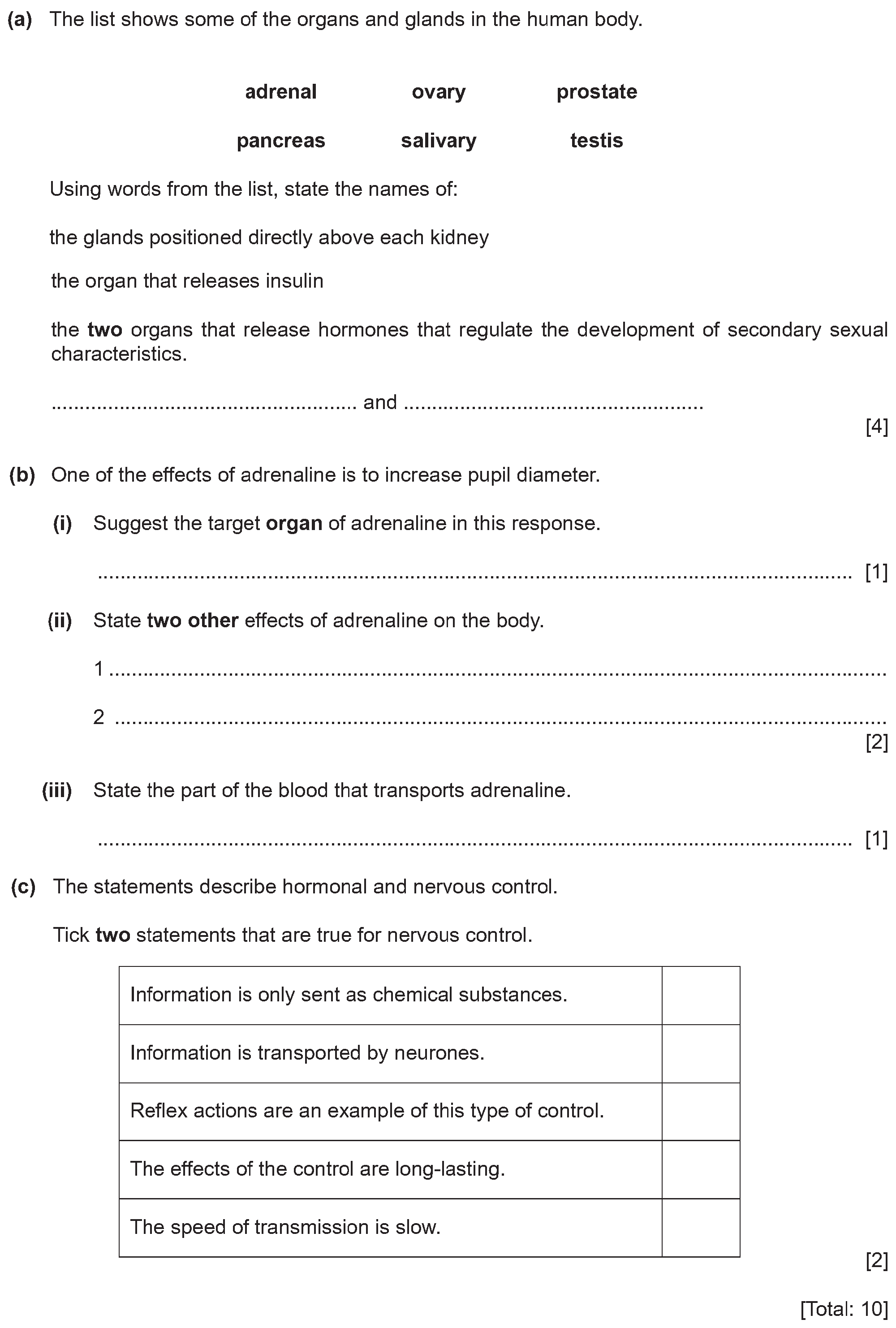 Q7: Cambridge IGCSE Biology - 0610 - Core Paper 3 2023 Spring Zone 2