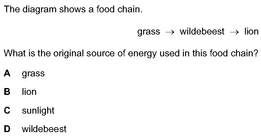 In a particular habitat, hyaenas eat antelopes and grass is eaten by antelopes.What is the source of energy for the grass?A antelopesB carbon dioxid...