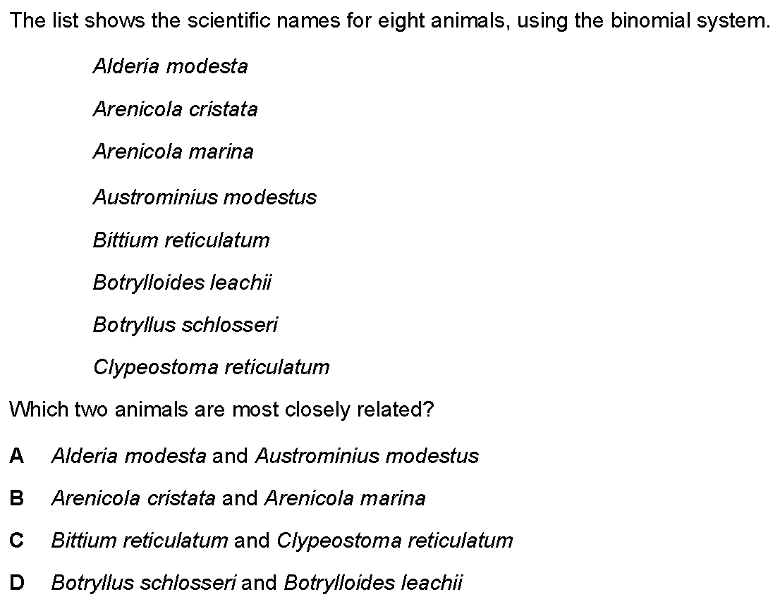 Fig. 6.1 shows three different insects.(a) Insects 1 and 2 are more closely related to each other than to insect 3.(i) Explain how the binomial names ...