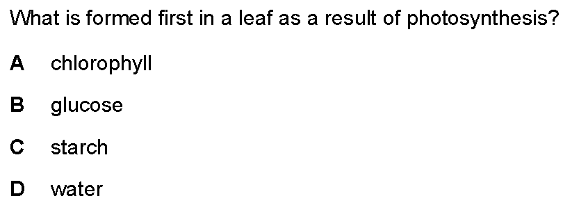 What is formed first in a leaf as a result of photosynthesis?A. celluloseB. proteinC. starchD. sugar