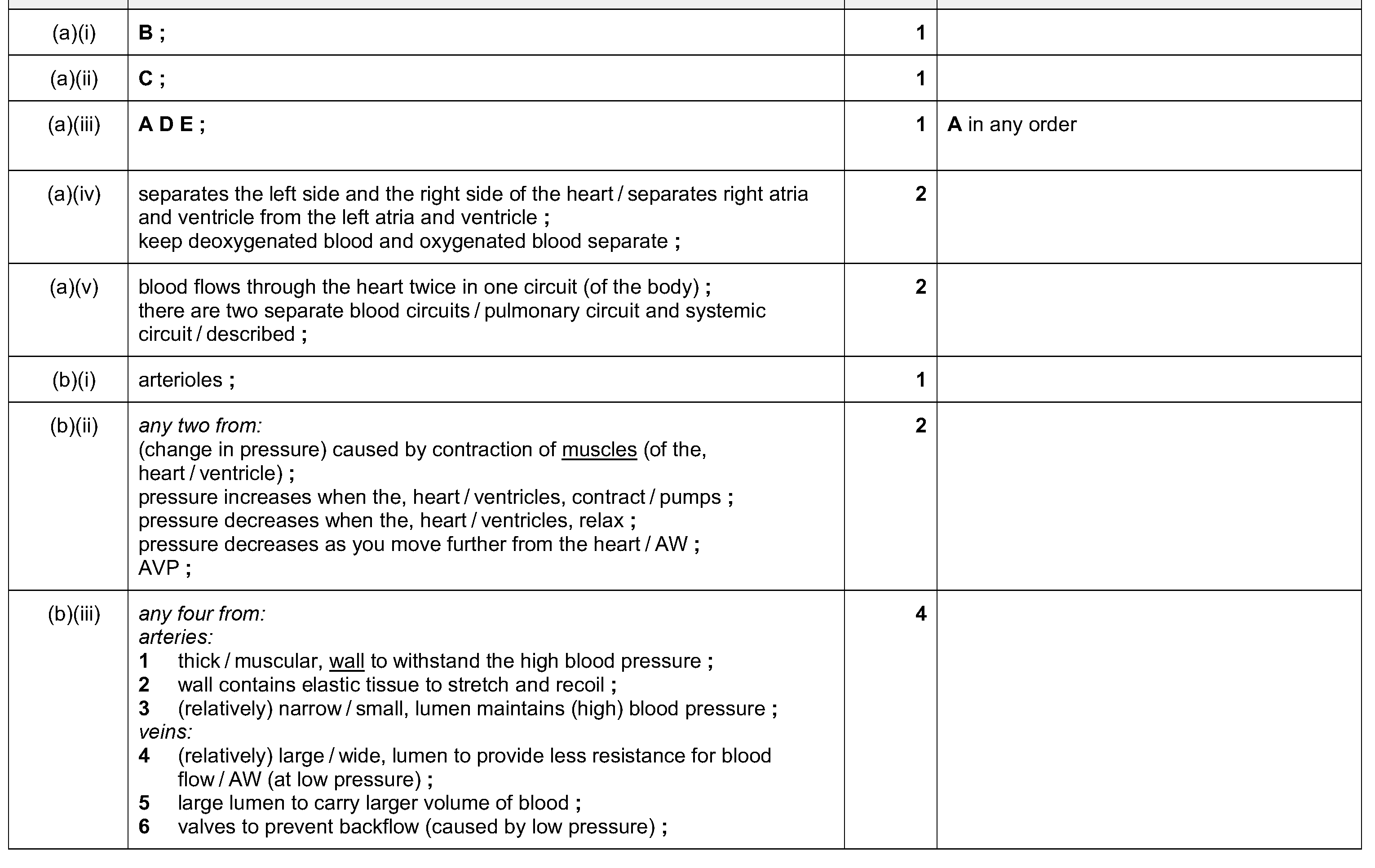 3. (a) Fig. 3.1 shows a kidney nephron and its associated blood vessels. The compositions of fluids A, B and C were analysed. Table 3.1 shows the re...