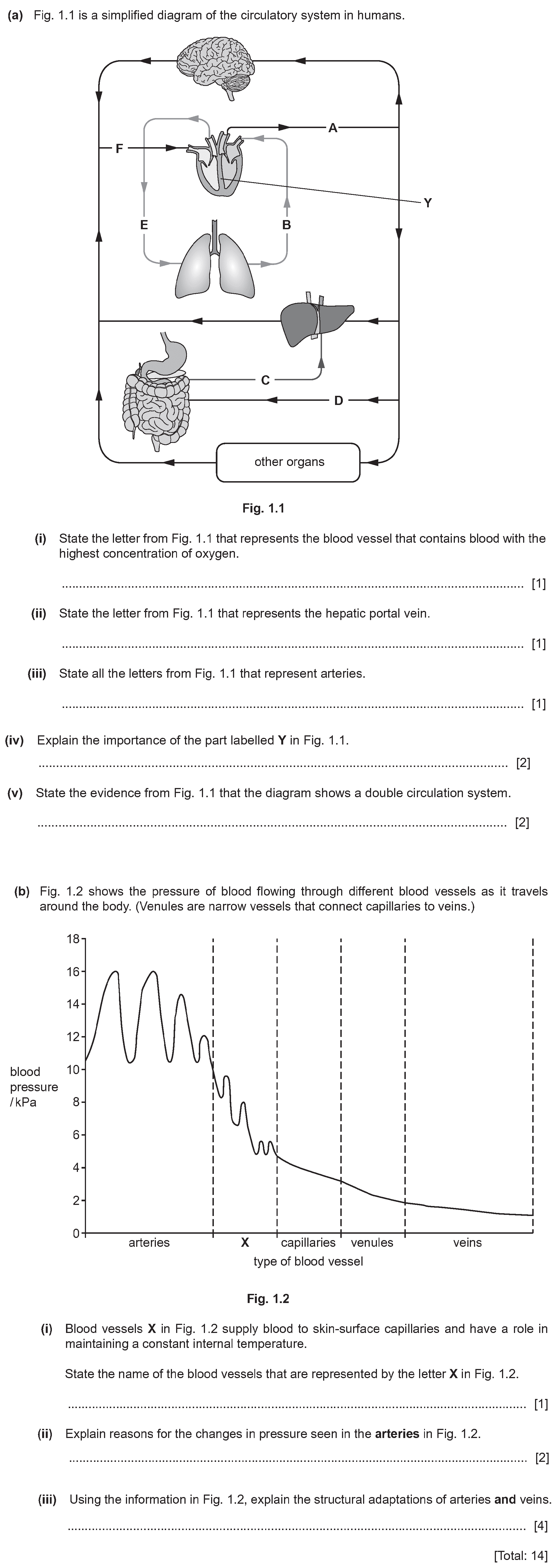 2. (a) Fig. 2.1 is a diagram of the gas exchange system in humans. (i) State the names of the parts labelled X, Y and Z in Fig. 2.1. [3] (ii) The wa...