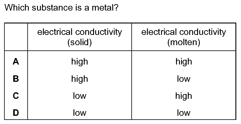 A substance, X, has the following properties.1 It has a high melting point.2 It conducts electricity in the solid and liquid states.3 It is malleable....