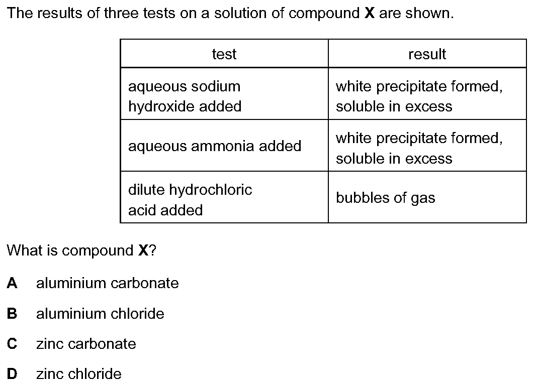 Q20: Cambridge IGCSE Chemistry - 0620 - Core Paper 1 2011 Winter Zone 1