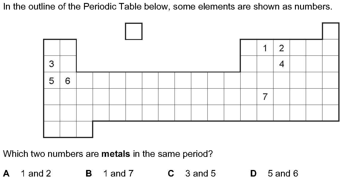 The diagram shows a section of the Periodic Table.Which elements will conduct electricity at room temperature?