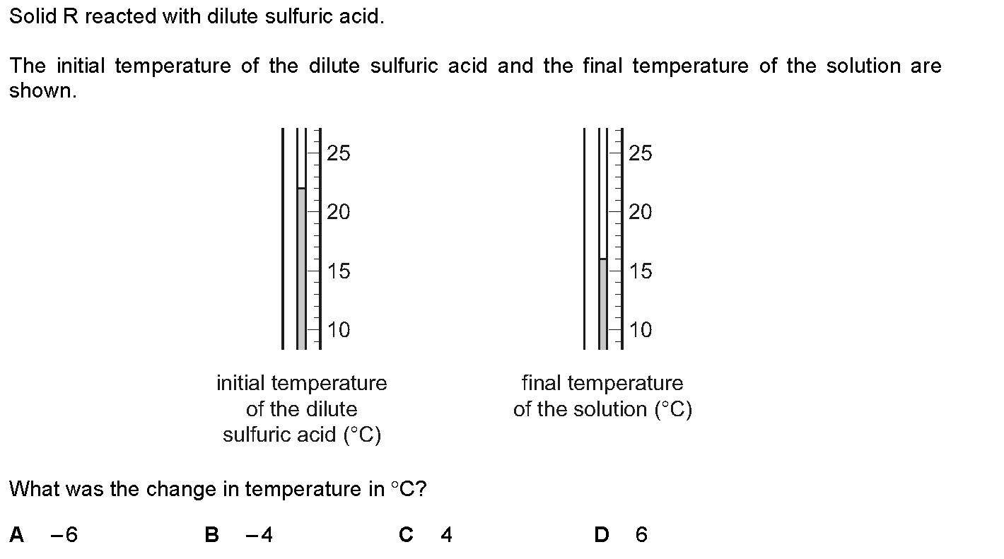 Solutions of two chemicals are mixed.A reaction occurs and the temperature change is measured.Which statement is correct?