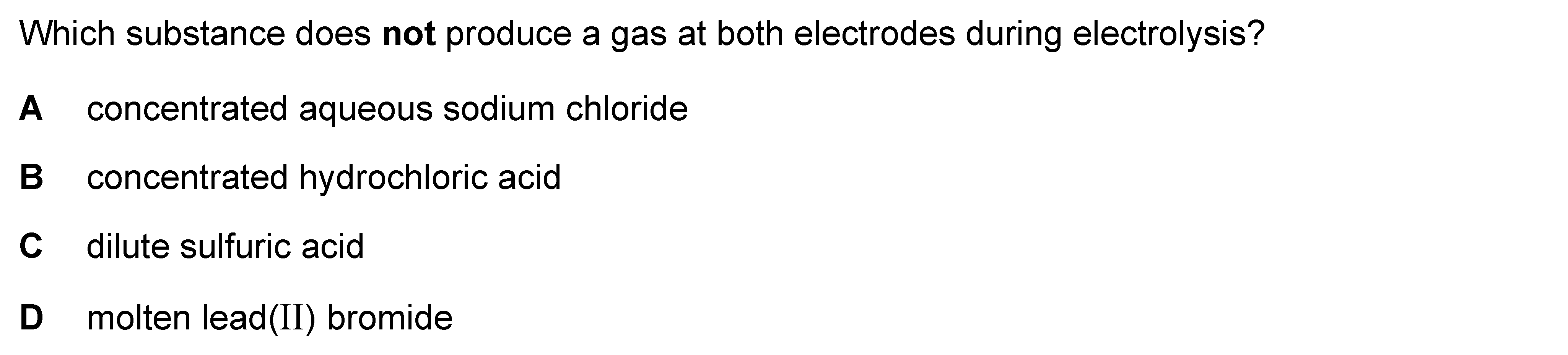 Concentrated aqueous sodium chloride, concentrated hydrochloric acid and molten lead bromide were separately electrolysed in experiments 1, 2 and 3. ...