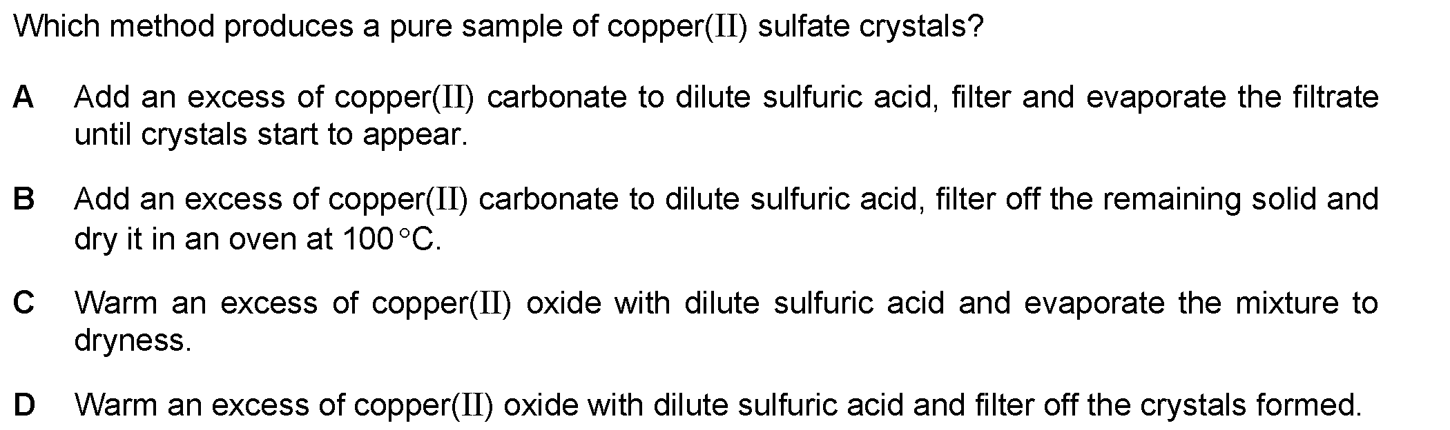 An aqueous solution of copper(II) sulfate was made by adding excess copper(II) oxide to dilute sulfuric acid. The mixture was heated, stirred and then...