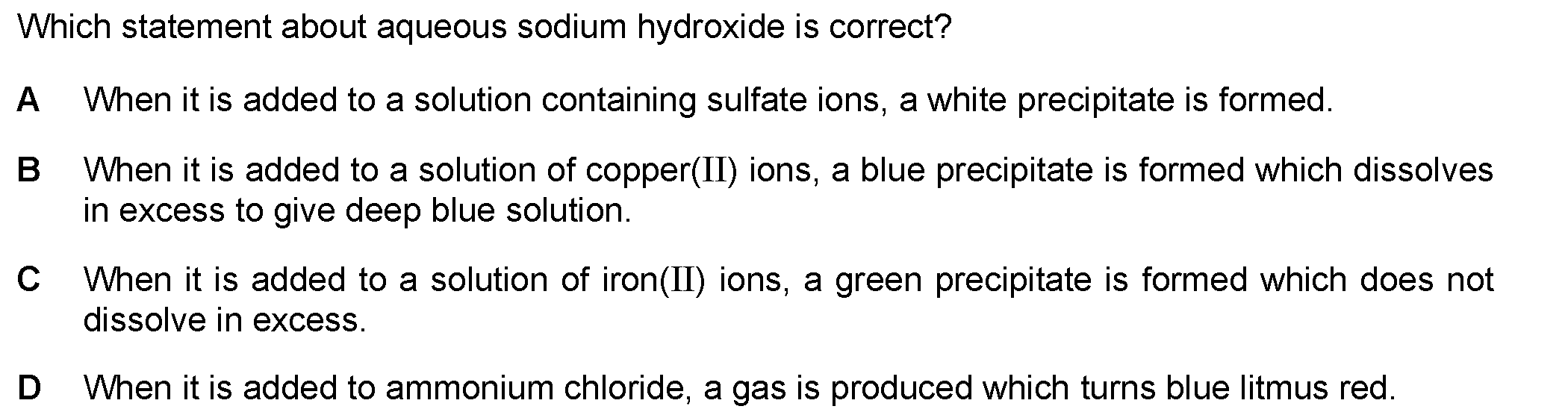 Aqueous sodium hydroxide is added to a solution of a salt. A blue precipitate is formed which does not dissolve in excess.Aluminium foil is added to t...