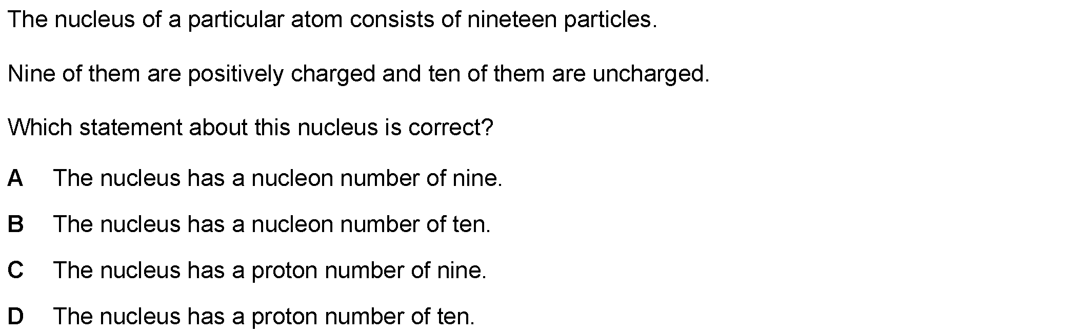 The diagram shows an atom. What is the proton number and neutron number of the atom? [Table_1]