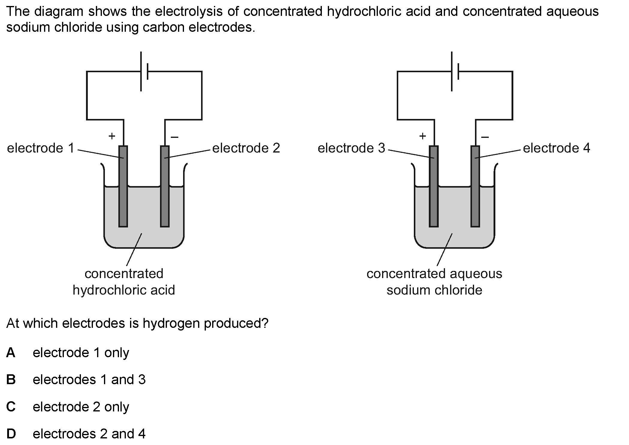 Concentrated aqueous sodium chloride, concentrated hydrochloric acid and molten lead bromide were separately electrolysed in experiments 1, 2 and 3. ...
