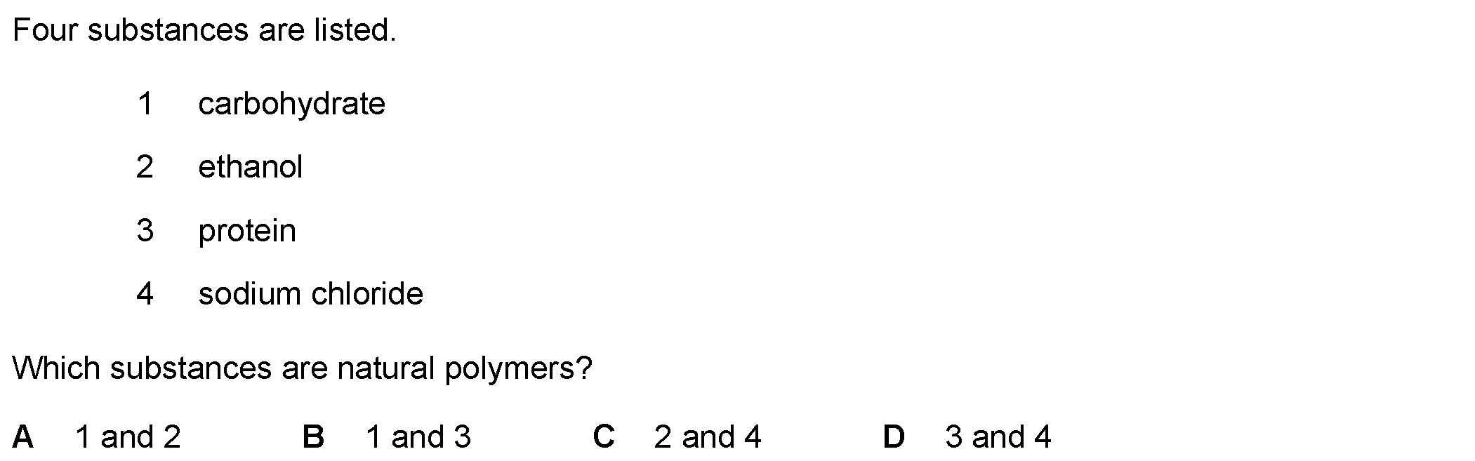 Part of the label on the packet of a potato product is shown.This potato product contains:starchethanoic acidsodium chloridesugarWhich constituent is ...
