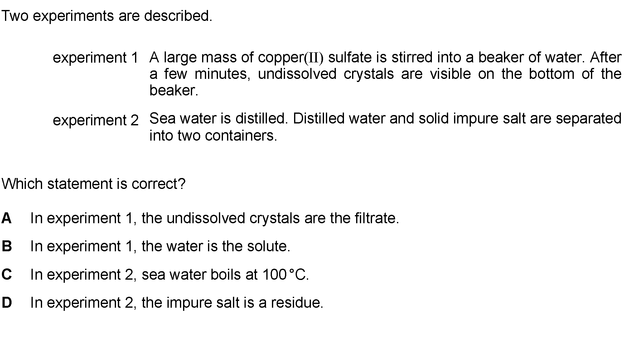 Q39: Cambridge IGCSE Chemistry - 0620 - Core Paper 1 2024 Spring Zone 2