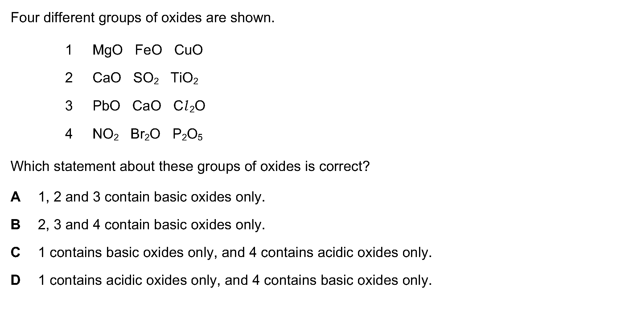 Q20: Cambridge IGCSE Chemistry - 0620 - Core Paper 1 2024 Winter Zone 1