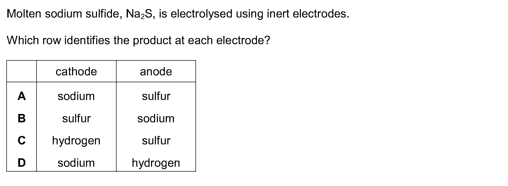Concentrated aqueous sodium chloride is electrolysed using graphite electrodes. What is the product formed at the cathode?
