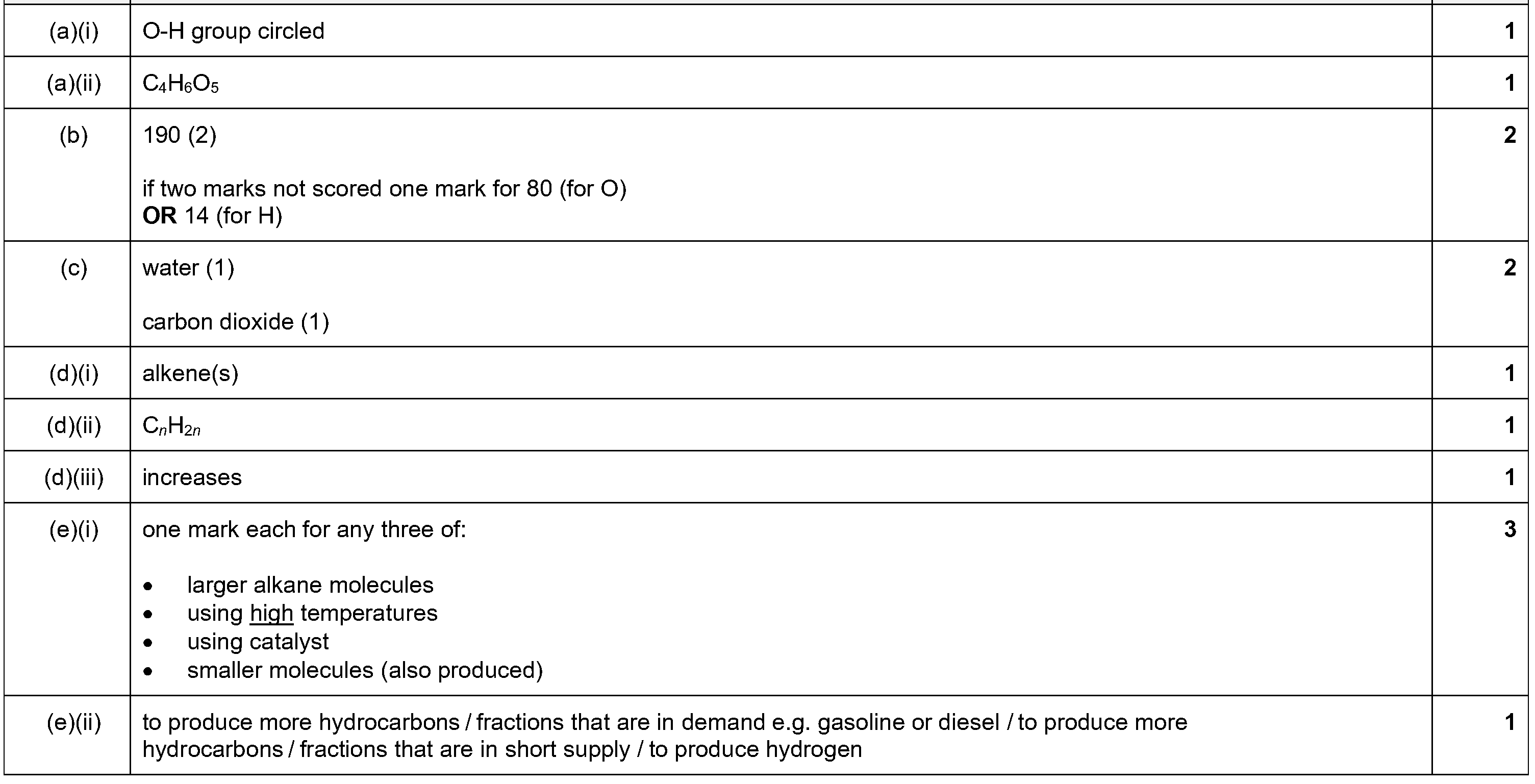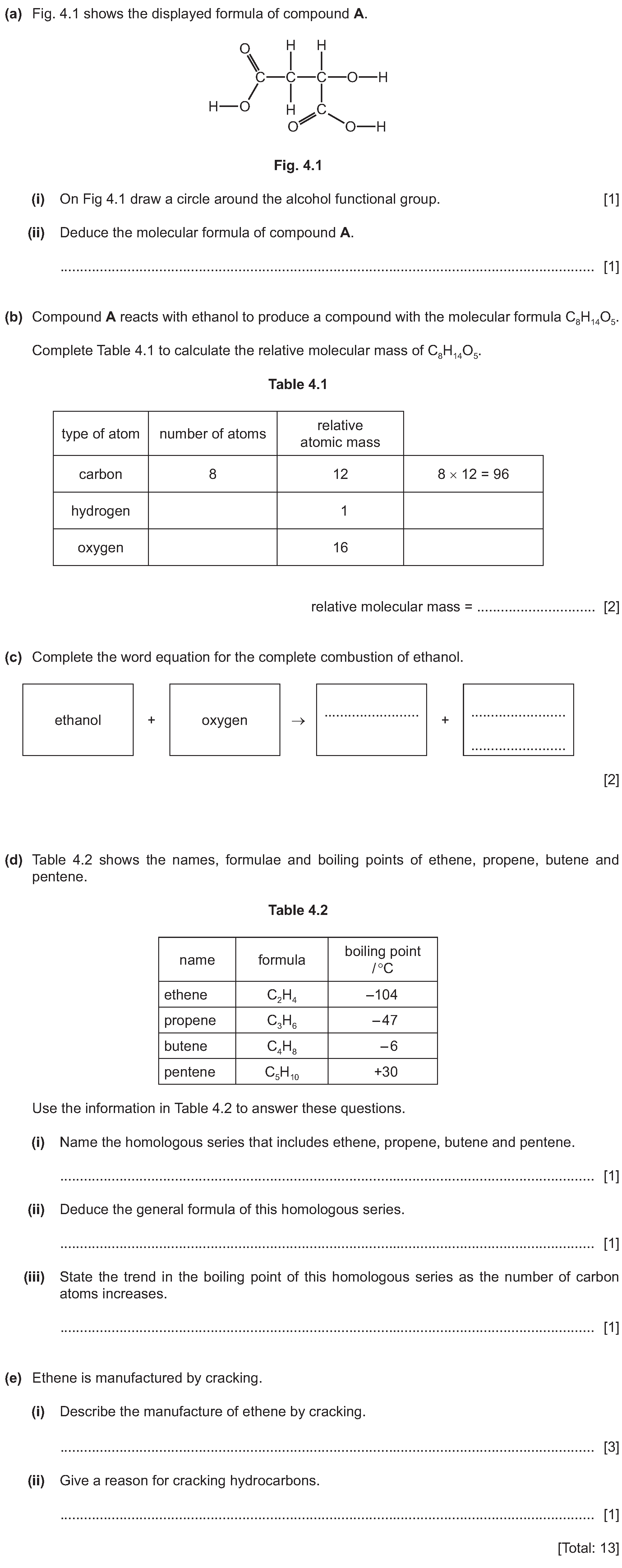 4 Alkenes are a homologous series of hydrocarbons which are made by cracking larger alkane molecules.(a)(i) Write the general formula for alkenes.(ii)...