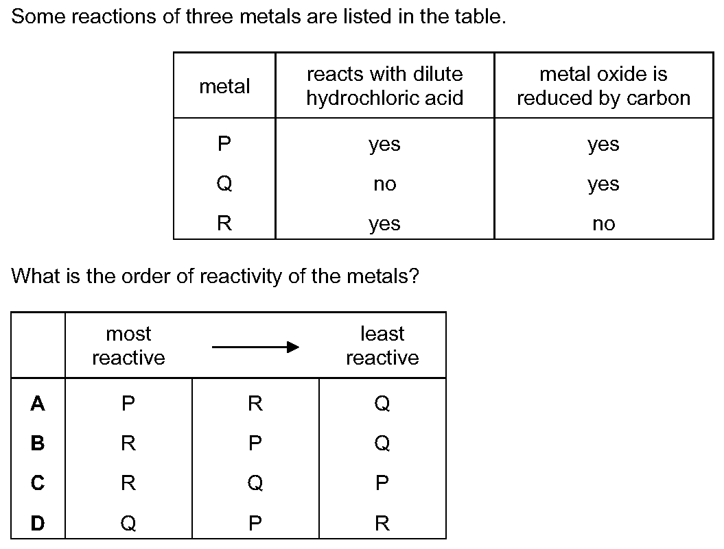A list of metals is shown.aluminiumcopperironmagnesiumsilverzincWhich metal will displace all of the other metals from aqueous solutions of their salt...