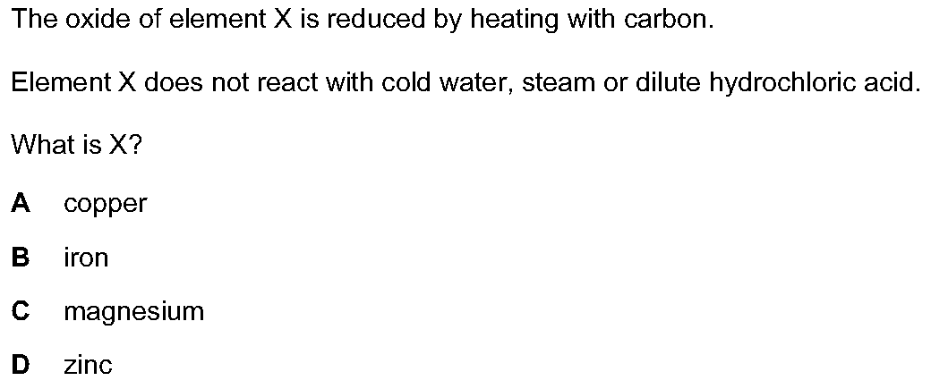 A list of metals is shown.aluminiumcopperironmagnesiumsilverzincWhich metal will displace all of the other metals from aqueous solutions of their salt...