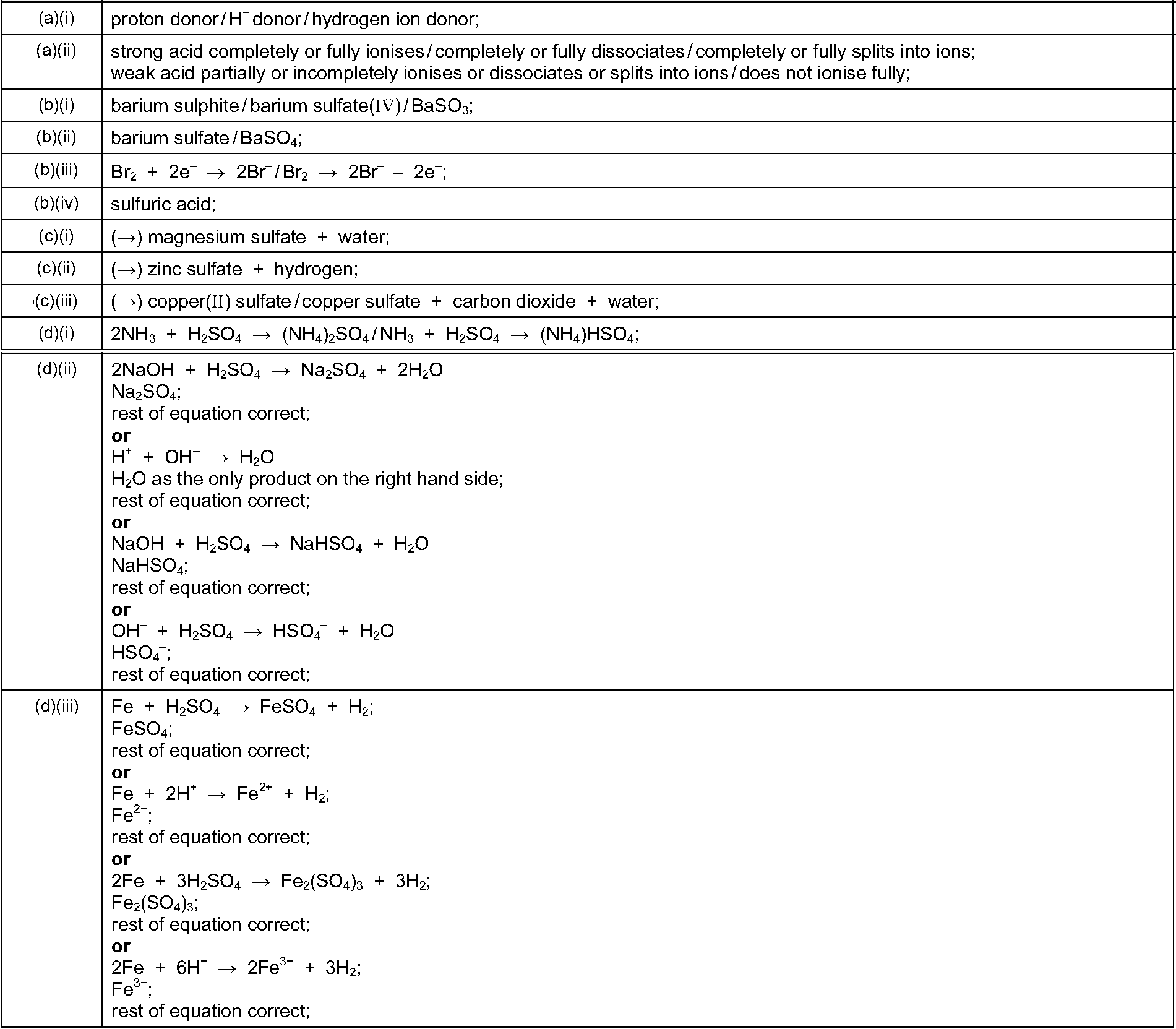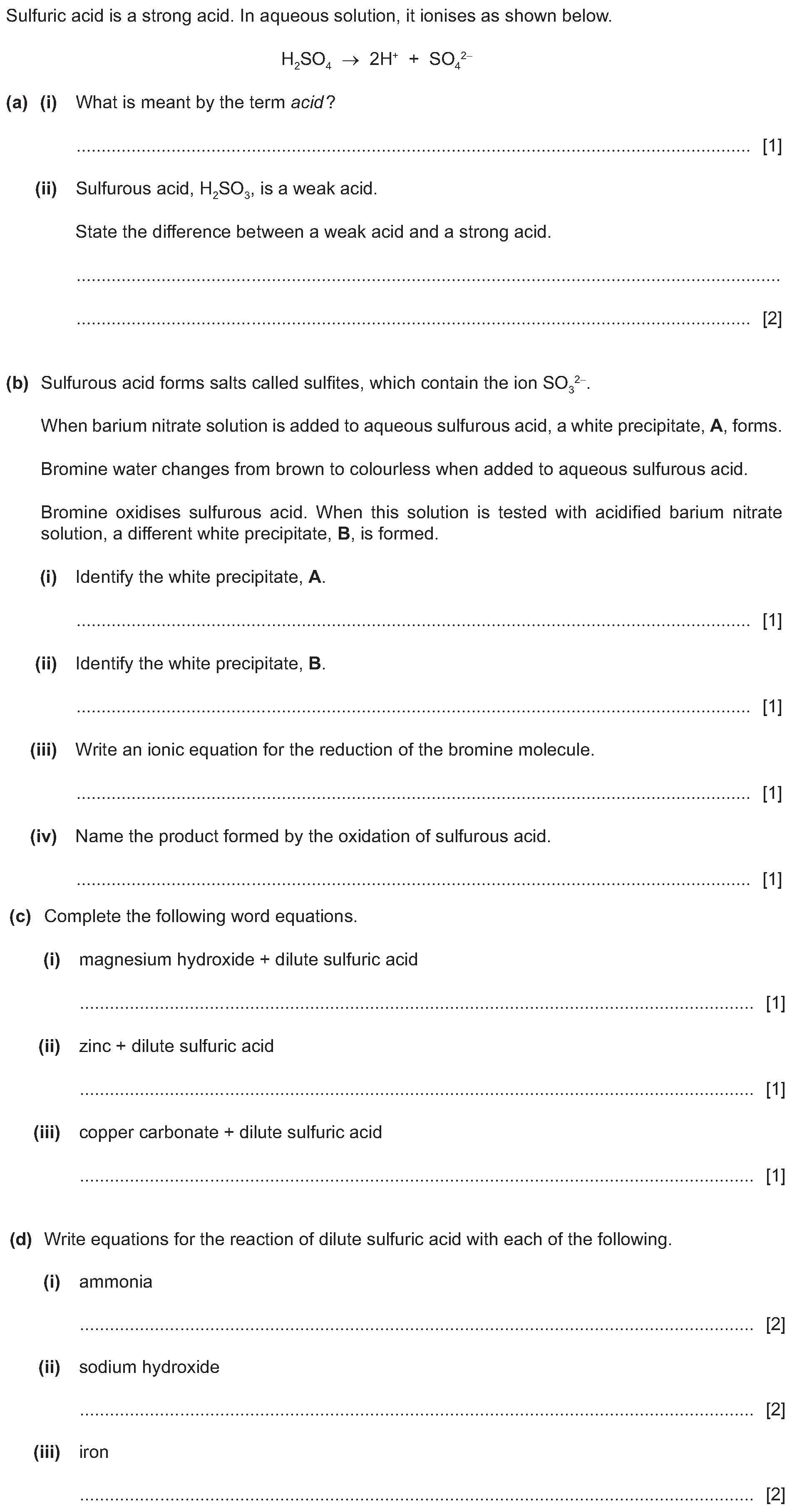 Dilute sulfuric acid is added to two separate aqueous solutions, X and Y. The observations are shown.[Table_1]Which row shows the ions present in the ...