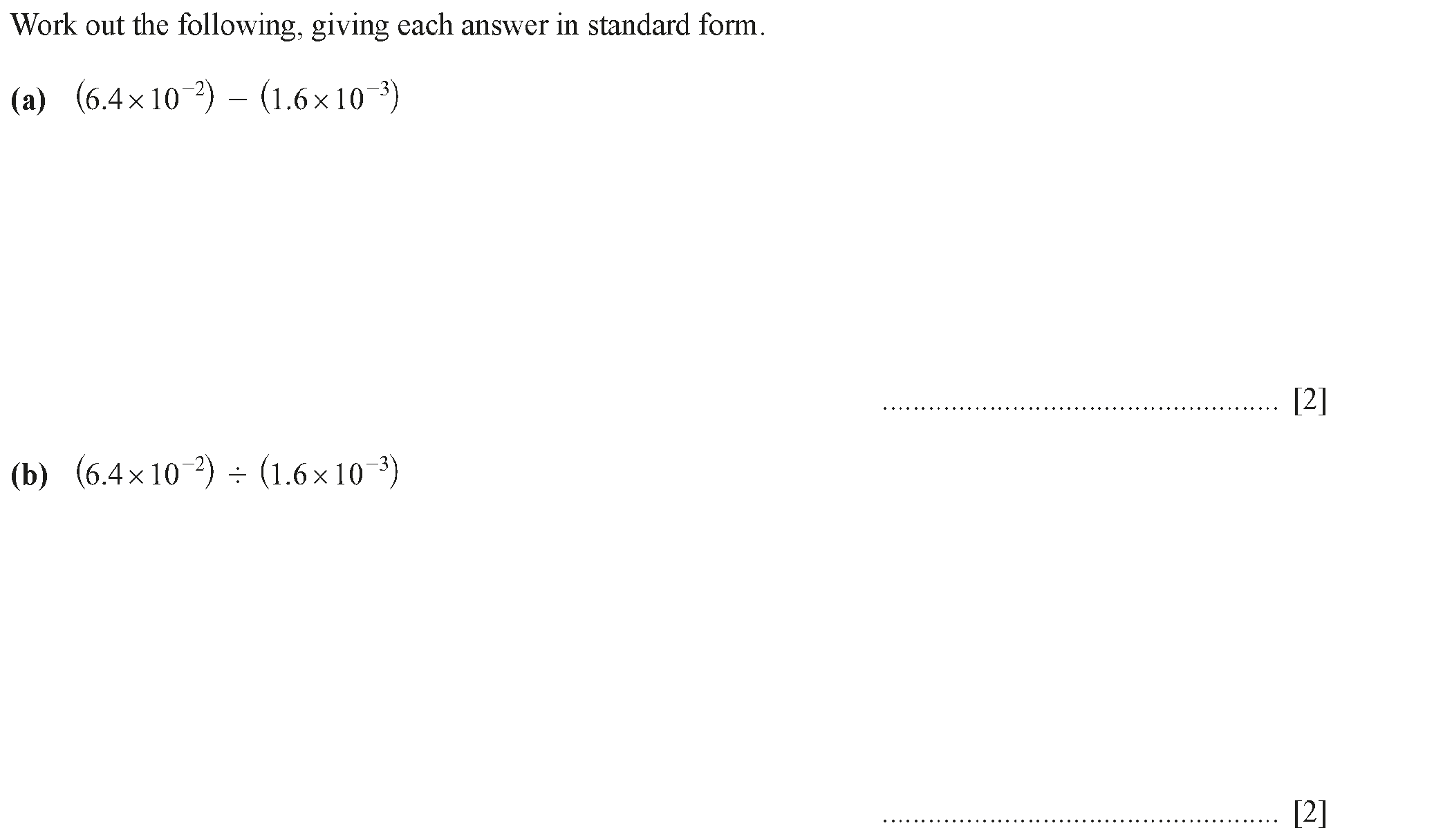 Work out.(a) \( \frac{8}{0.04} \) .......................................................[1](b) \( \frac{4}{5} - \frac{1}{4} \) .........................