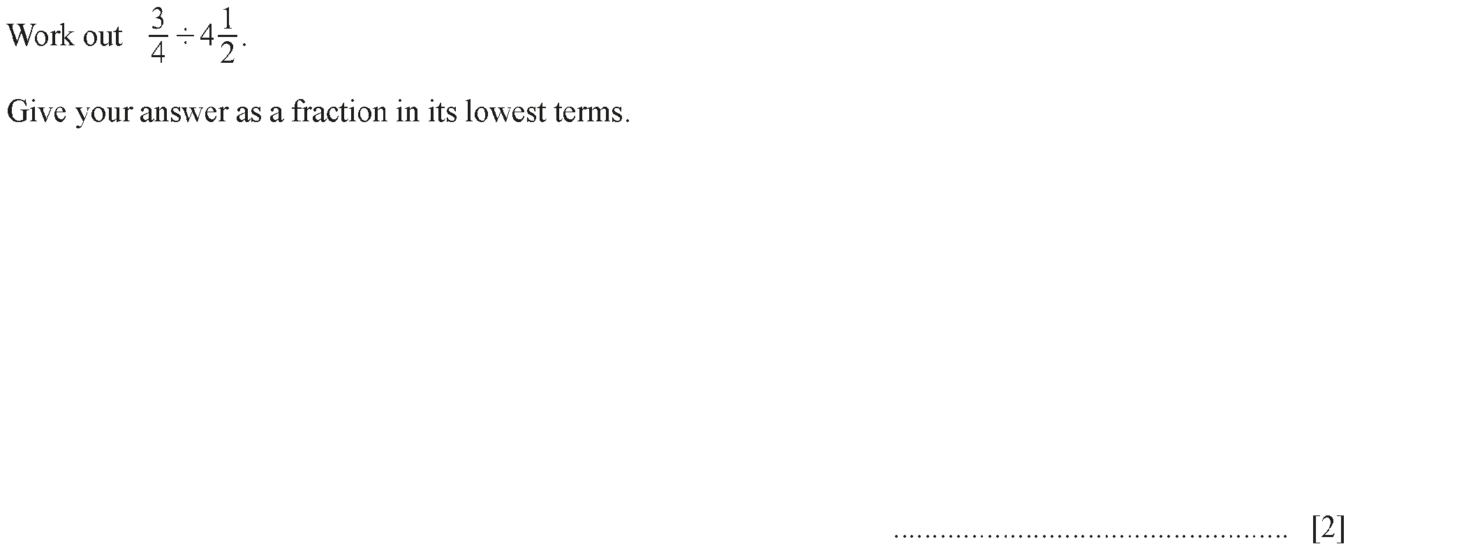 Work out.(a) \( \frac{8}{0.04} \) .......................................................[1](b) \( \frac{4}{5} - \frac{1}{4} \) .........................
