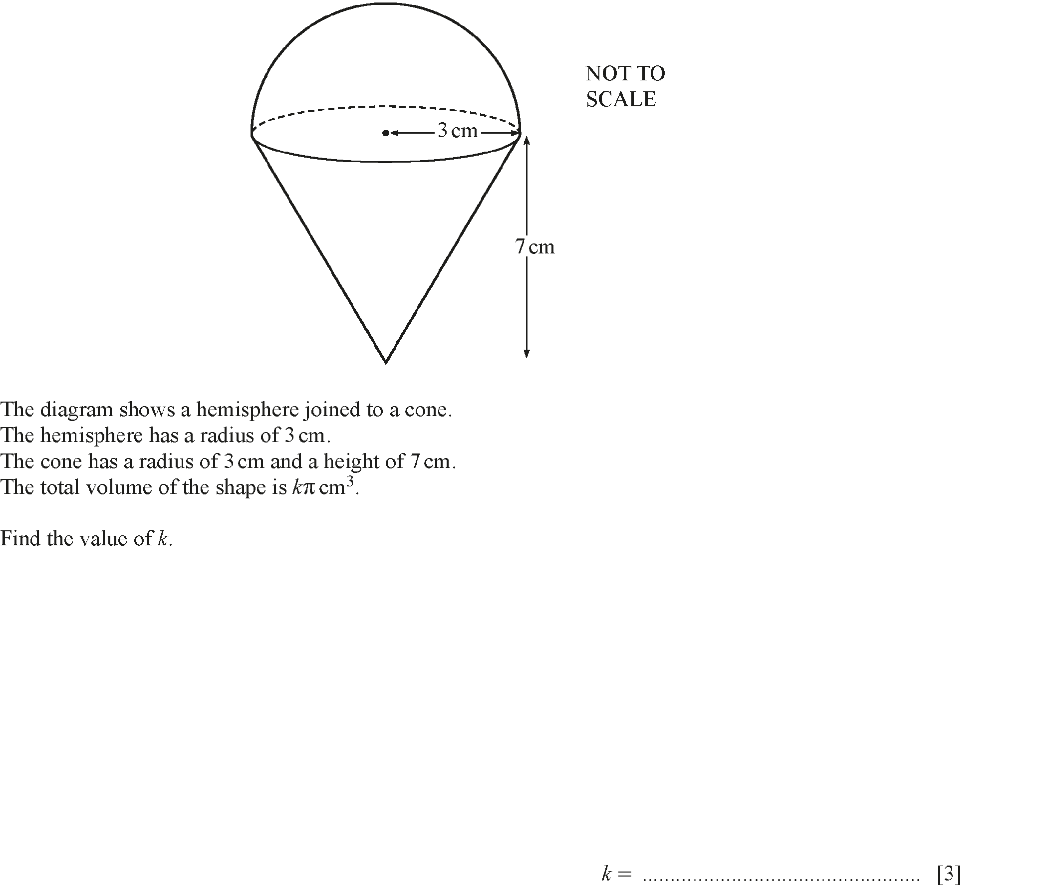 A solid hemisphere has radius 6 cm.(a) Find, in terms of \( \pi \),(i) the volume of the hemisphere, .............................................. cm...