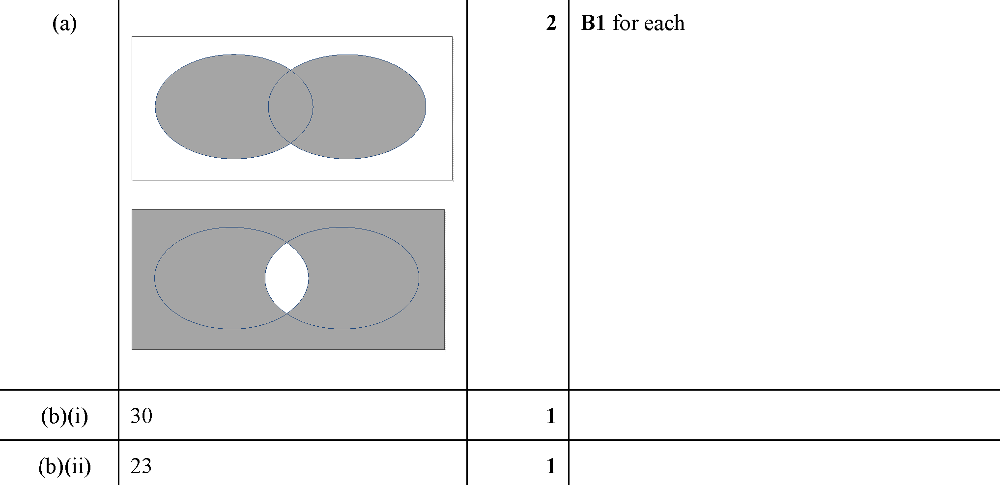 (a) In each diagram, shade the region indicated. $A \cap B'$ $(A \cup C) \cap B'$ [2] (b) Use set notation to describe the shaded region. .....