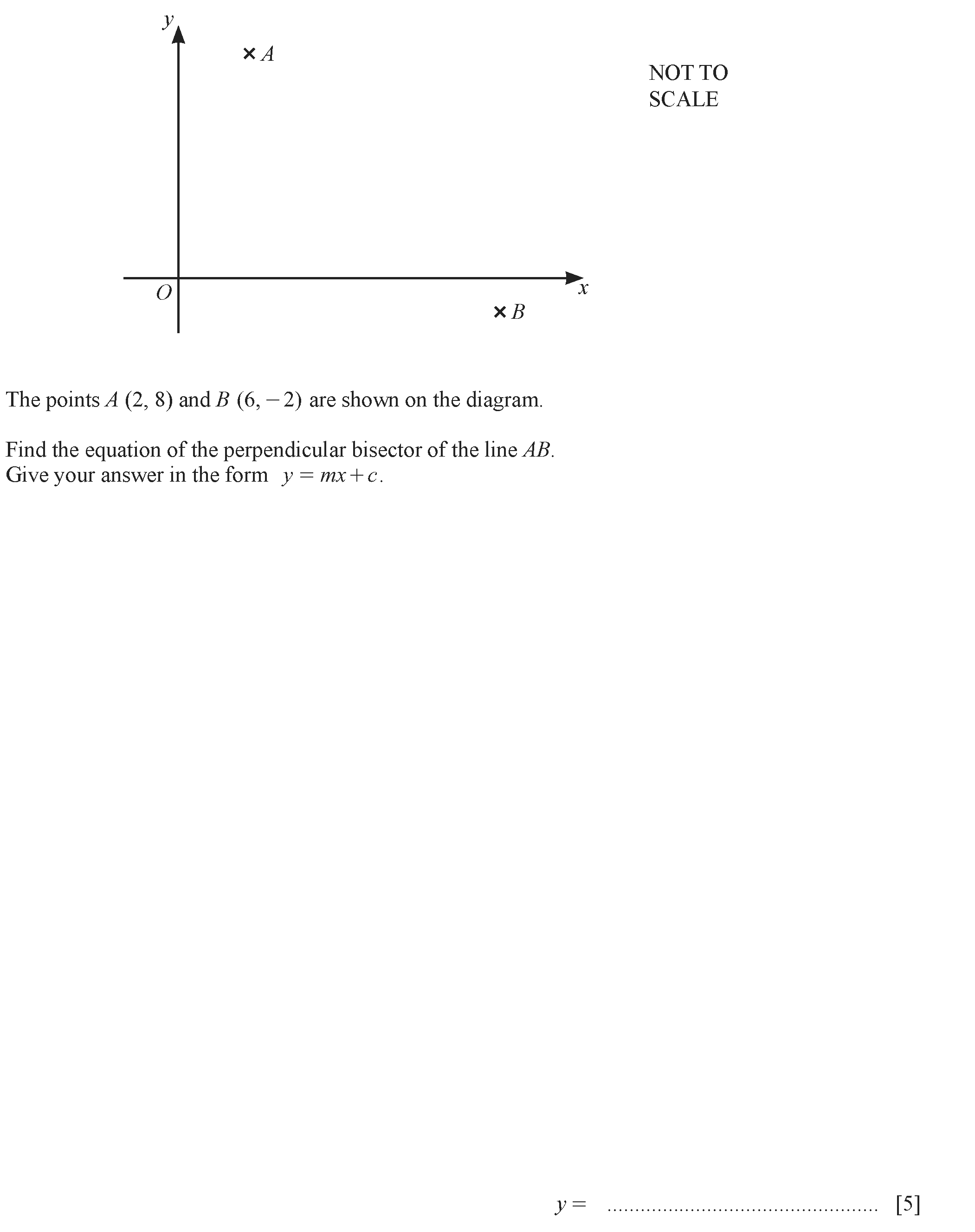 A is the point (2, 8) and B is the point (6, 0).(a) Find the co-ordinates of the midpoint of AB.Answer(a) $(........................, ...................