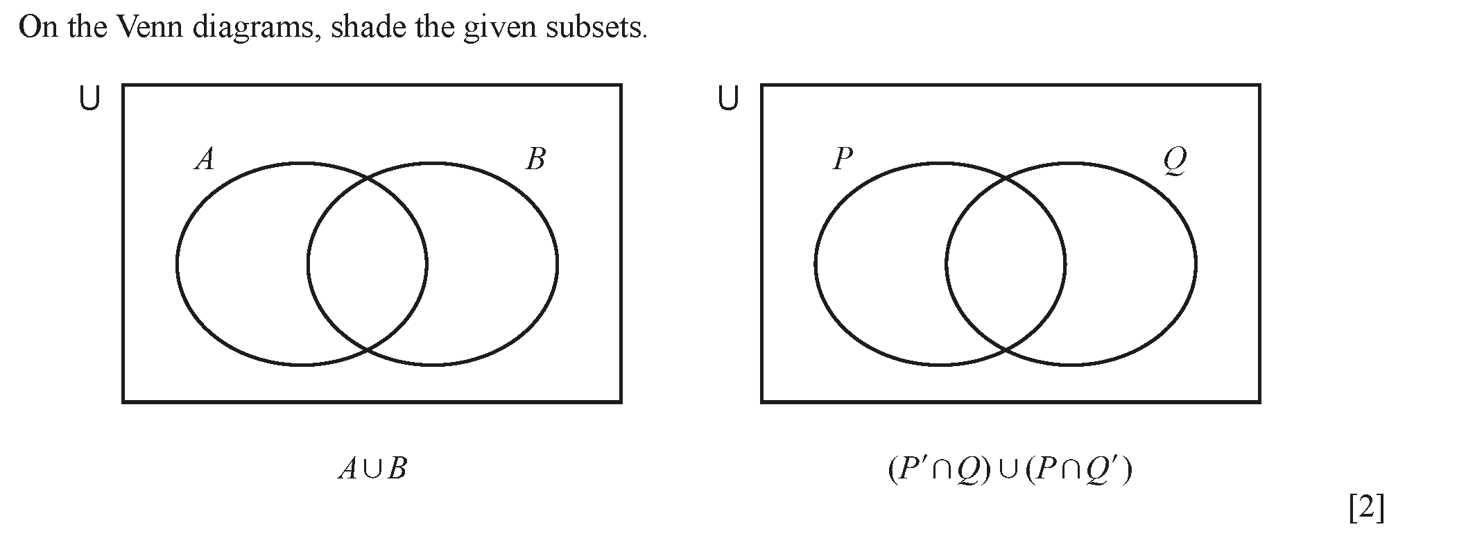 In each Venn diagram, shade the region indicated.[Image_1: (A \cup B)^'][Image_2: (P \cup Q) \cap R]
