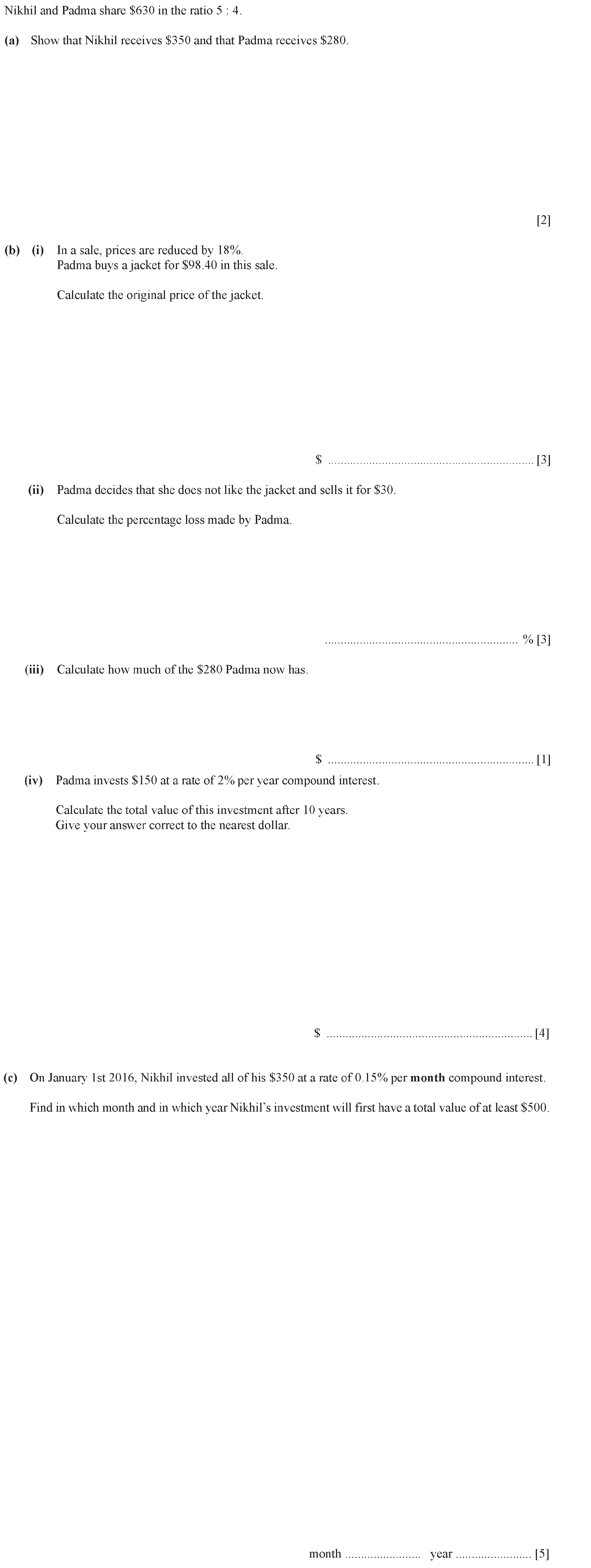 (a) Annelise buys a car that is one year old for $13\,600.The value of this car has reduced by 15\% of the value when it was new.(i) Calculate ...