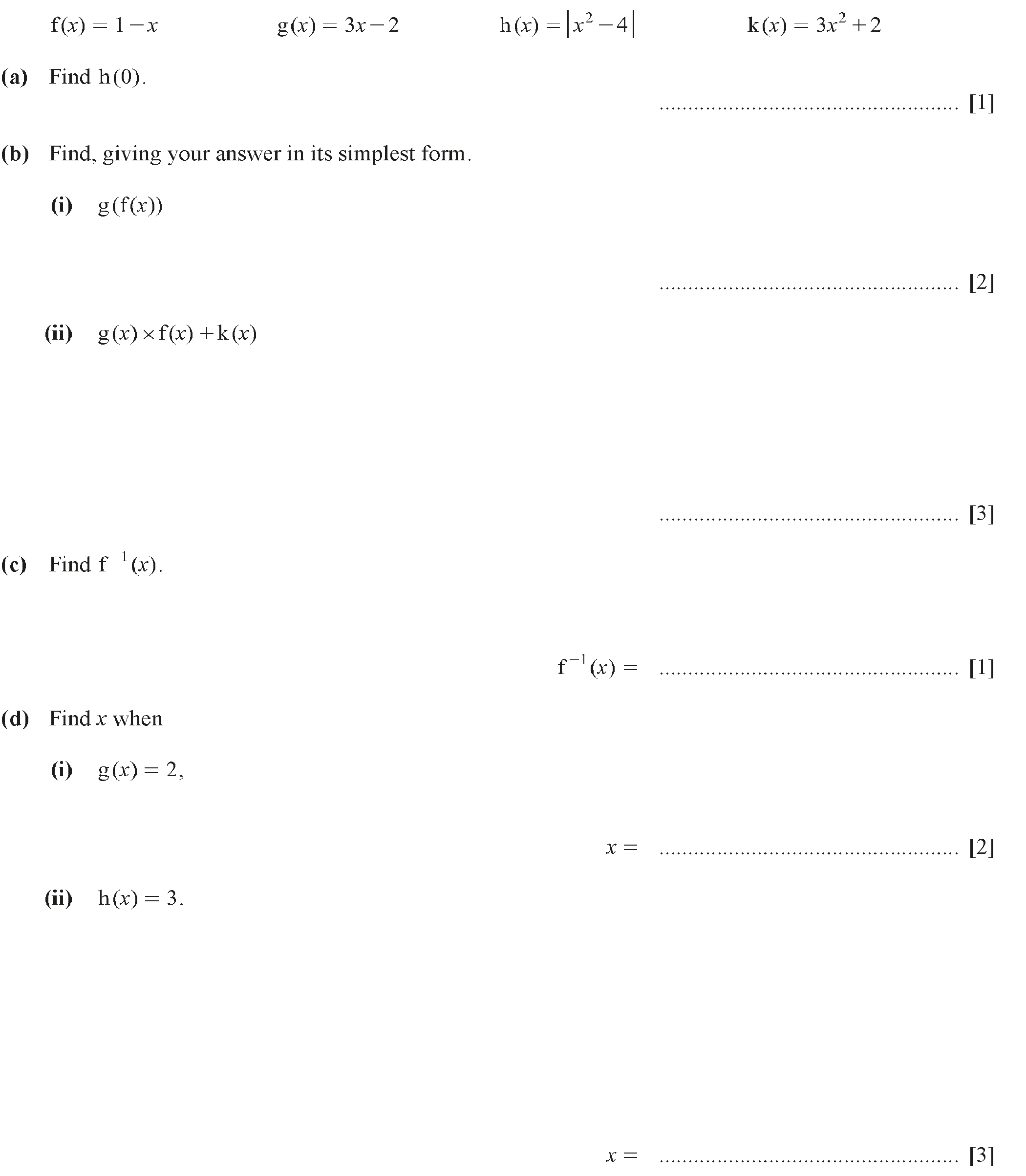 f(x) = 3x + 1 \hspace{1cm} g(x) = \log x (a) Find the value of g(f(33)). ............................................... [2] (b) Find the value of x...